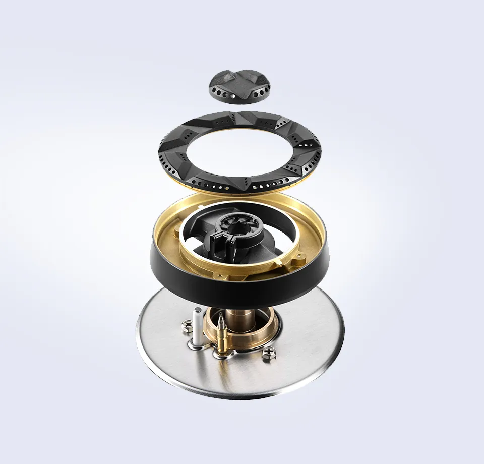 *Hundreds of fire holes gathering focused fire. *8 direction of oxygen improving grooves generating stronger fire. *8 different level of burning bringing a more balanced fire. *As accurate as you wish to master the control of fire. *Dimensional circulative supply of oxygen, increasing the heat efficiency over 60%. *Flameout protection devices that guards your from incidents and trouble.