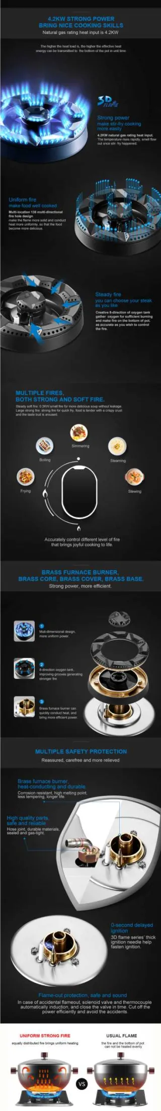 *Black high tempered anti-explosion glass panel that is safe to operate and simple to clean. *Track shape knob with exquisite metallic texture that can master a variety of delicacy. *High quality stainless steel easy cleaning dish, clean and more safe(small dip angel designed to guide the soup ). *One integrated cast iron grill, high temperature resistance and no deformation.